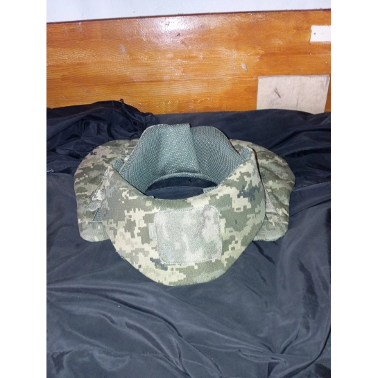При необхідності ви можете використовувати лише плечову секцію виробу, а шийний захист при цьому може бути зафіксований у складеному вигляді попереду плитоноски.