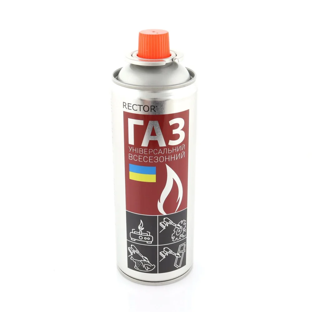 Балон газовий для портативних газових приборів Rector, 220 г на 400 млВсесезонний газовий балон призначений для використання з портативними газовими приладами, що мають цангове з’єднання: газовими плитами, пальниками, паяльними лампами та іншими пристроями. Підходить як для польових умов, так і для побутового використання вдома, зокрема під час тривалих вимкнень електроенергії.