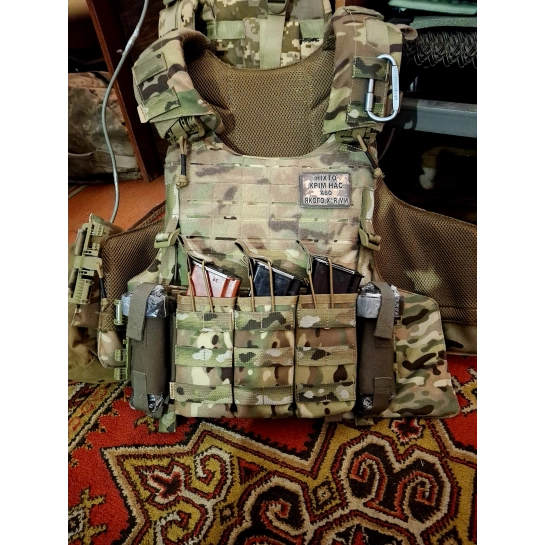 Отримав бронежилет, вже встиг протестувати на бойових виходах. Я суперзадоволений, не хочу його знімати) Легкий, закриває велику площу, багато місця для кріплення додаткової амуніції. Карабінчик теж зацінив.