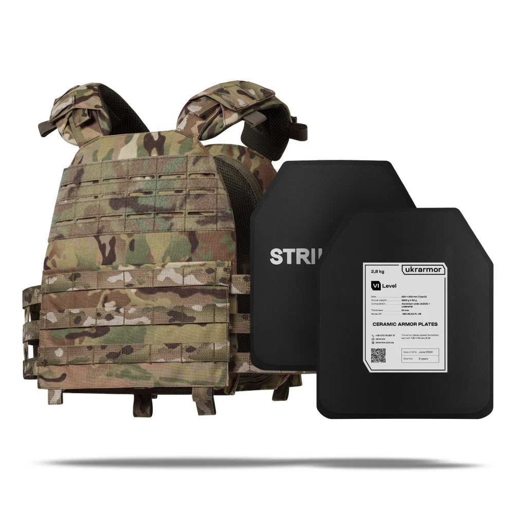 - 2 бронеплити 6-го класу (вага 2.8 кг, матеріал кераміка Алюміній Оксид Al₂O₃);