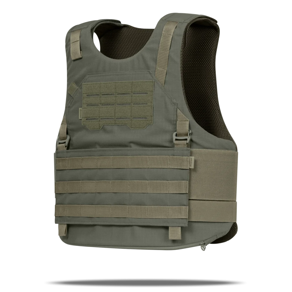 Ця модель поєднує легкість, компактність і високу ефективність — плитоноска одягається разом з повнорозмірними м’якими балістичними пакетами 1-го або 2-го класу захисту 520х450 мм. Завдяки великій площі покриття — це один із найефективніших варіантів у своєму класі (балістичний захист не йде у комплекті, його необхідно купувати окремо).