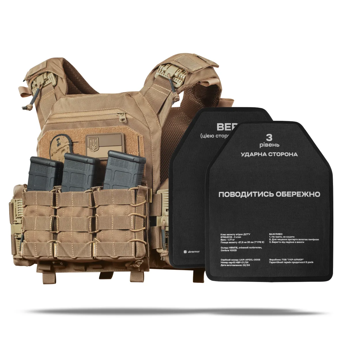 - 2 збільшені бронеплити 3 класу (вага 1.77 кг, матеріал НВМПЕ (надвисокомолекулярний поліетилен);