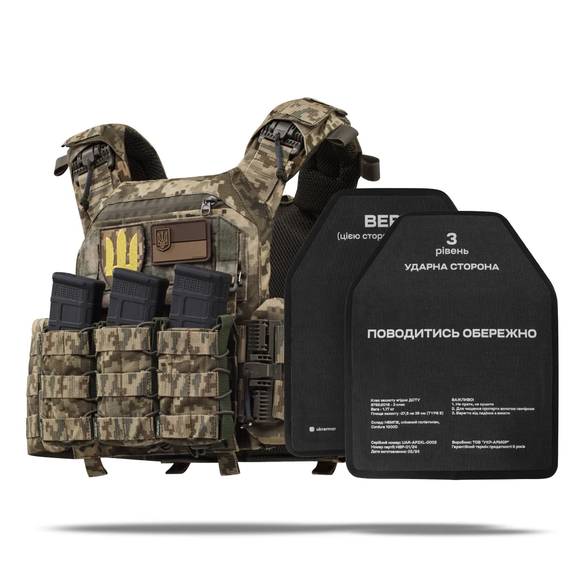 - 2 збільшені бронеплити 3 класу (вага 1.77 кг, матеріал НВМПЕ (надвисокомолекулярний поліетилен);
