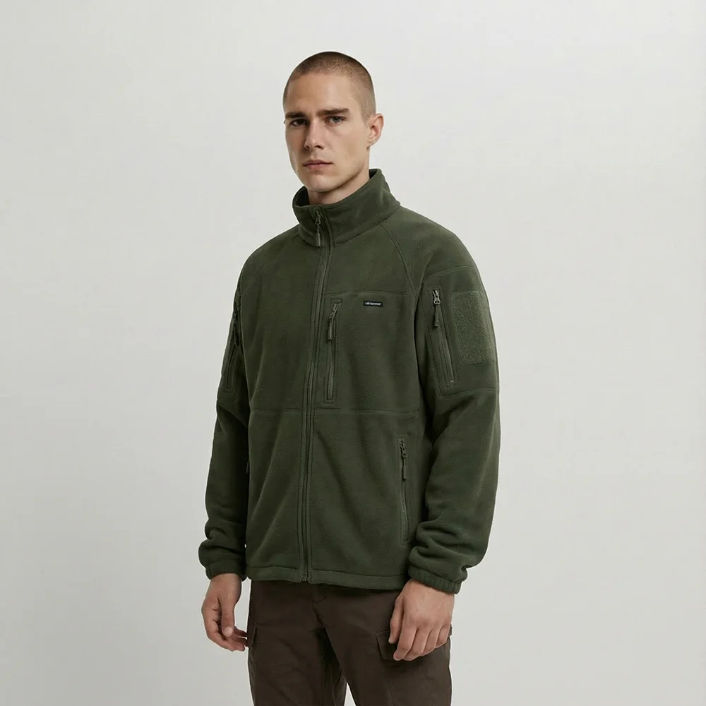 Тканина щільністю 250 г/м² має спеціальну структуру з повітряними кишенями, завдяки чому відмінно утримує тепло, залишаючись легкою та зручною у щоденному носінні. Поліестерова основа з додаванням еластичних волокон забезпечує гнучкість та комфорт під час посилених навантажень. А спеціальний тип плетіння нитки підвищує її зносостійкість — така кофта витримує часте використання, не втрачаючи форму й вигляд.