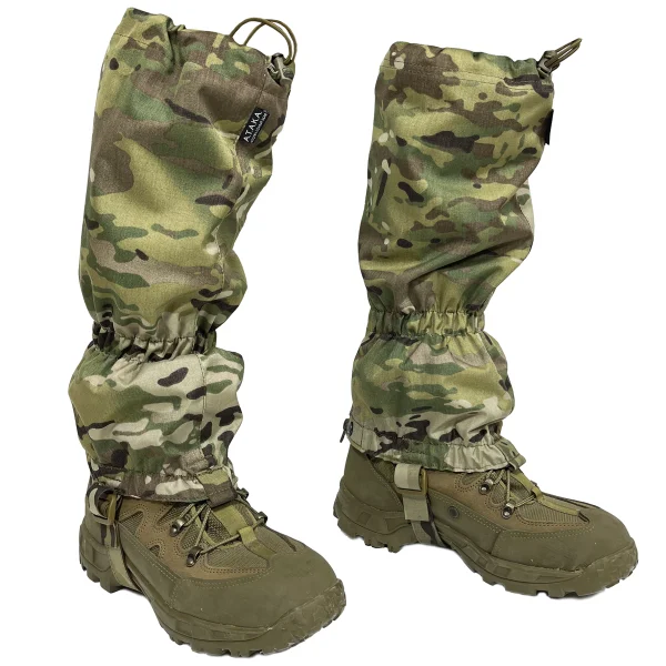 Гамаші виготовлені з надміцної тканини Cordura 500D NIR, ці гамаші не лише витривалі, а й відповідають військовим стандартам маскування. Завдяки резиновим стяжкам та регулюванню по обхвату гомілки, вони щільно сидять на нозі, не сповзають і не перекручуються.