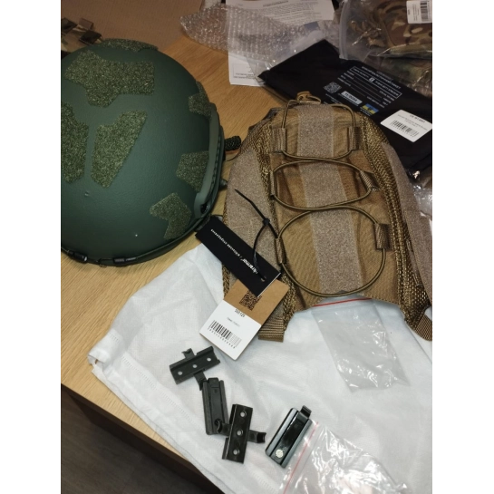 Практичний та перевірений комплект для захисту голови, що складається з кевларового шолома Fast з рівнем захисту NIJ IIIA (захищає від уражень уламками, рикошетів та пострілів з легкої стрілецької зброї), активних навушників M31H з шумозаглушенням шкідливих звуків (понад 82 Дб) та маскувального кавера (тактичний чохол на шолом).
