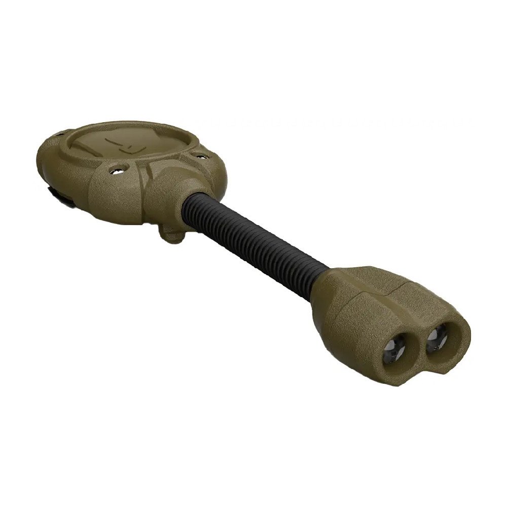 Корпус ліхтаря виготовлений з міцного полімеру та відповідає стандарту герметичності IPX4 — це базовий захист від дощу, вологи та бризок. Конструкція адаптована до тактичного використання: низький профіль, мінімальна вага, простота монтажу. За живлення відповідає дві батареї типу CR2016, що дозволяє працювати до 16 годин.