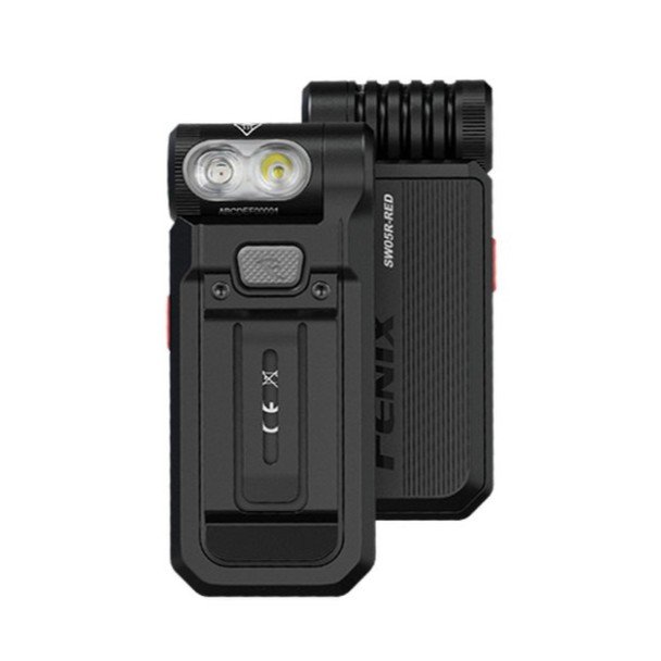 У хвіст вбудовано магніт для фіксації конструкції на металевій поверхні. У Fenix SW05R-RED передбачено 5 режимів, які розділені на 2 групи за кольором освітлення.