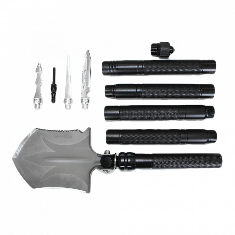 Легка, компактна та багатофункціональна лопата, що включає більше десяти додаткових інструментів: подовжувачі, льодоруб, ніж-пила, викрутка, кресало, компас тощо. Це справжній набір тактичної готовності, який можна взяти із собою у гори, на полігон, на позиції або просто тримати в багажнику авто "про всяк випадок".