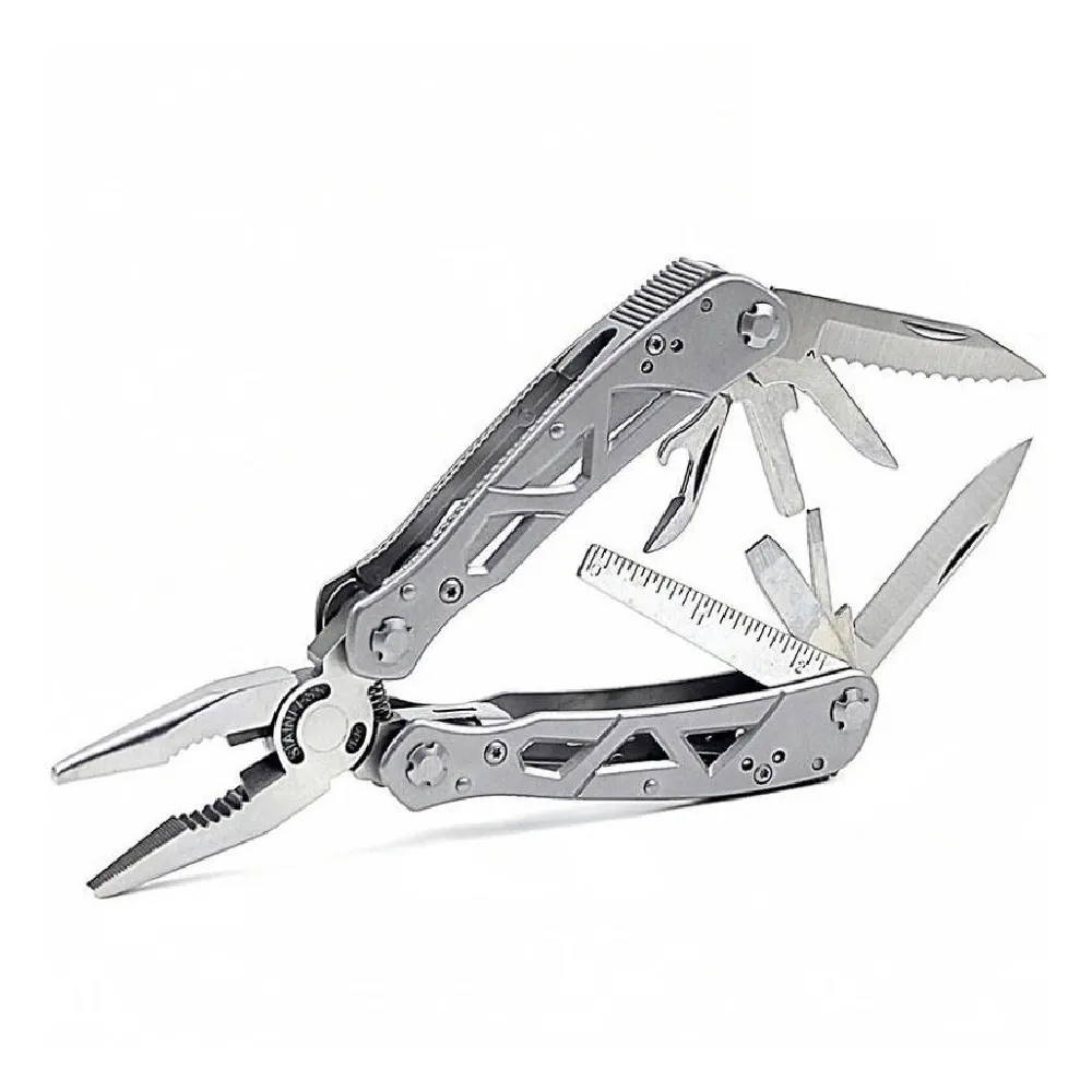 Компактна мобільна майстерня у твоїй кишені. Міцний, повнорозмірний мультитул із 13 вбудованими інструментами та набором змінних біт — все, що треба для невеликих ремонтних робіт. Корпус та інструменти виконані з твердої нержавіючої сталі 3Cr13, яка не боїться вологи й довго тримає заточку. Комплект постачається з міцним чохлом із нейлону та органайзером для біт.