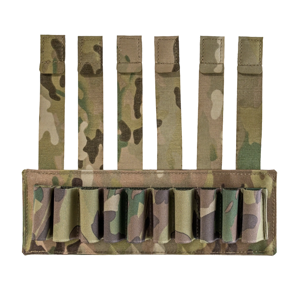 Патронаж на 12 калібр DEFua. МультикамПатронаж для 12 калібру дозволяє зручно розмістити боєкомплект і оперативно отримувати доступ до патронів без втрати темпу під час роботи. Місткість — 10 патронів.