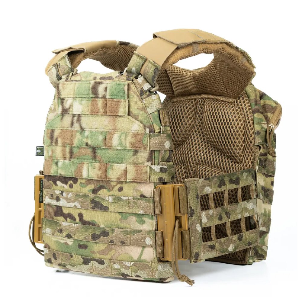 - 15-міліметровий демпфер (3D-сітка 5 мм + EVA-подушки 10 мм), що покриває всю внутрішню поверхню плитоноски, зменшує заперешкодну деформацію. Водночас забезпечує ефективну вентиляцію та комфорт під час носіння.