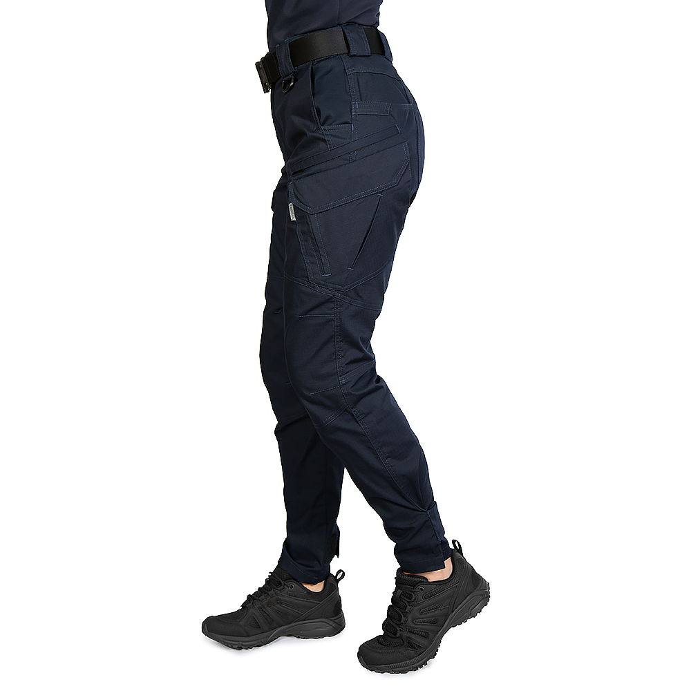 Штани тактичні Pani Герць Rip-Stop Stretch. Темно-синіЖіночі тактичні штани з кишенями карго, створені для захисниць, рятувальниць, працівниць правоохоронних органів та спецпідрозділів. Виготовлені з еластичної армованої тканини з вологостійким просоченням, вони поєднують міцність і практичність із відчуттям комфорту, що може позмагатися хіба що з улюбленими спортивними штанами.