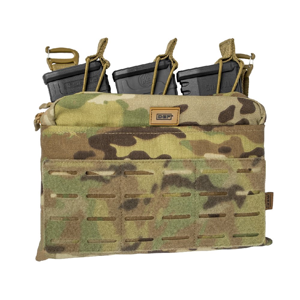 Штурмова панель «Кенгуру». МультикамВиготовлена з надміцної Cordura 1000D, модульна штурмова панель має розширений функціонал та адаптується під різні бойові задачі. Форм-фактор трансформер дозволяє змінювати конфігурацію залежно від потреб: розміщувати від 3 до 6 магазинів AR/АК, універсальний адміністративний підсумок або комбінувати модулі між собою.