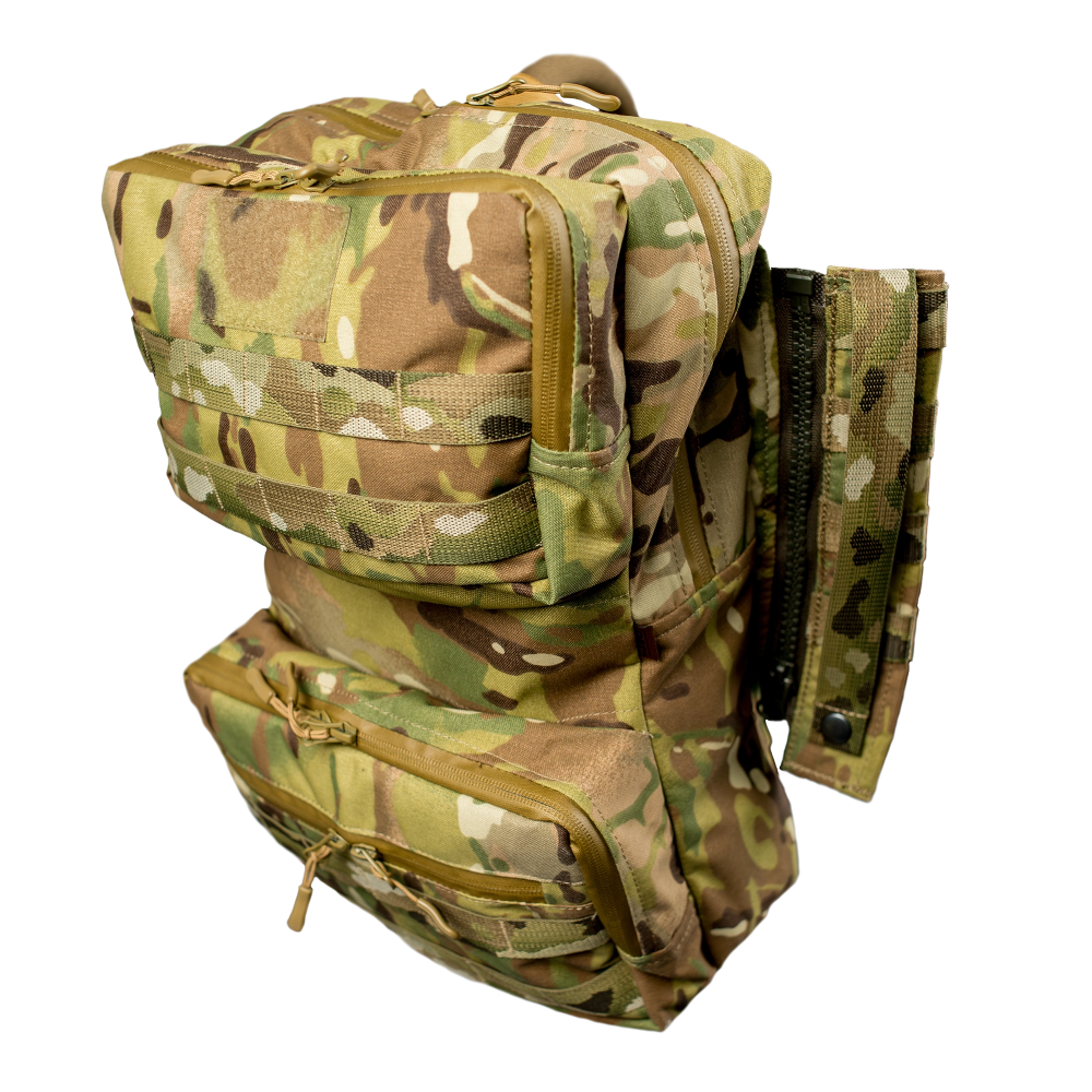 Універсальний штурмовий рюкзак / зіп-панель виготовлений із поєднання надміцного матеріалу Cordura 1000D / 500D, розрахований на інтенсивне використання в бойових умовах. Номінальний об’єм 20 л дозволяє переносити базовий набір спорядження штурмовиків та спецпризначенців із можливістю гнучкої організації внутрішнього простору.