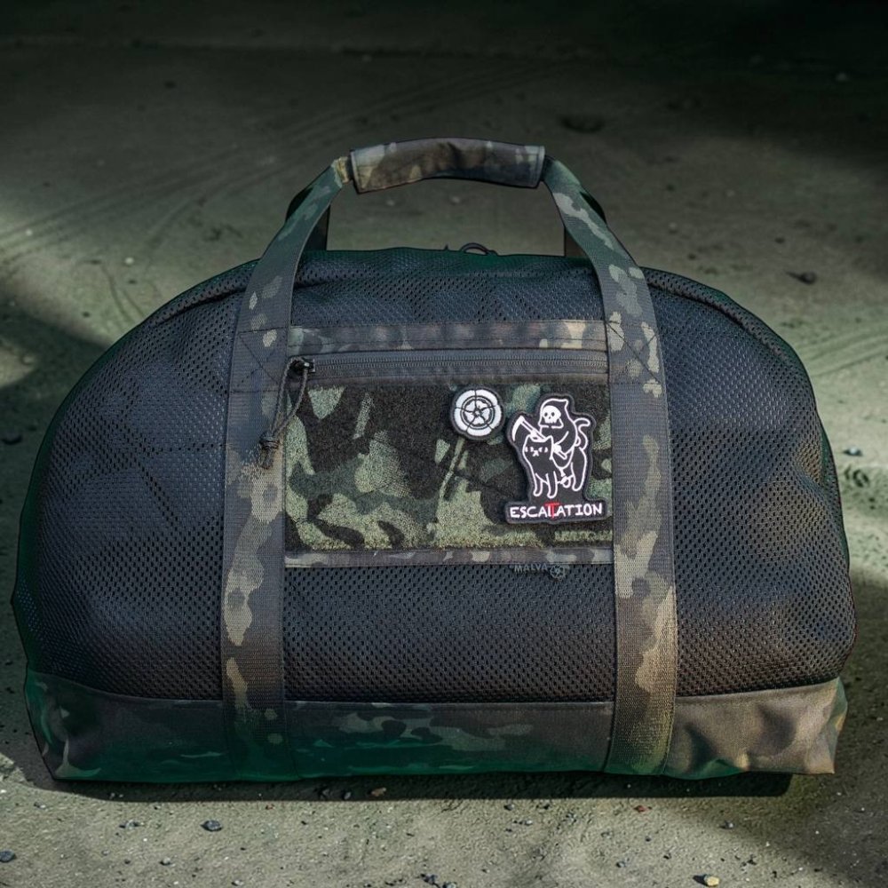 Основний матеріал — силова сітка (hard mesh 320 г/м²), яка дає постійну вентиляцію вмісту. Речі не «запарюються», швидше висихають і менше накопичують запах після інтенсивного використання. При цьому сітка зберігає міцність і стійкість до зношування.