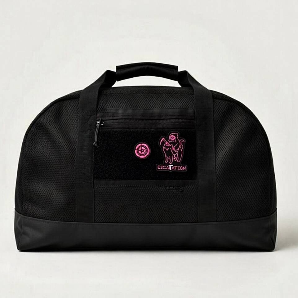 Основний матеріал — силова сітка (hard mesh 320 г/м²), яка дає постійну вентиляцію вмісту. Речі не «запарюються», швидше висихають і менше накопичують запах після інтенсивного використання. При цьому сітка зберігає міцність і стійкість до зношування.