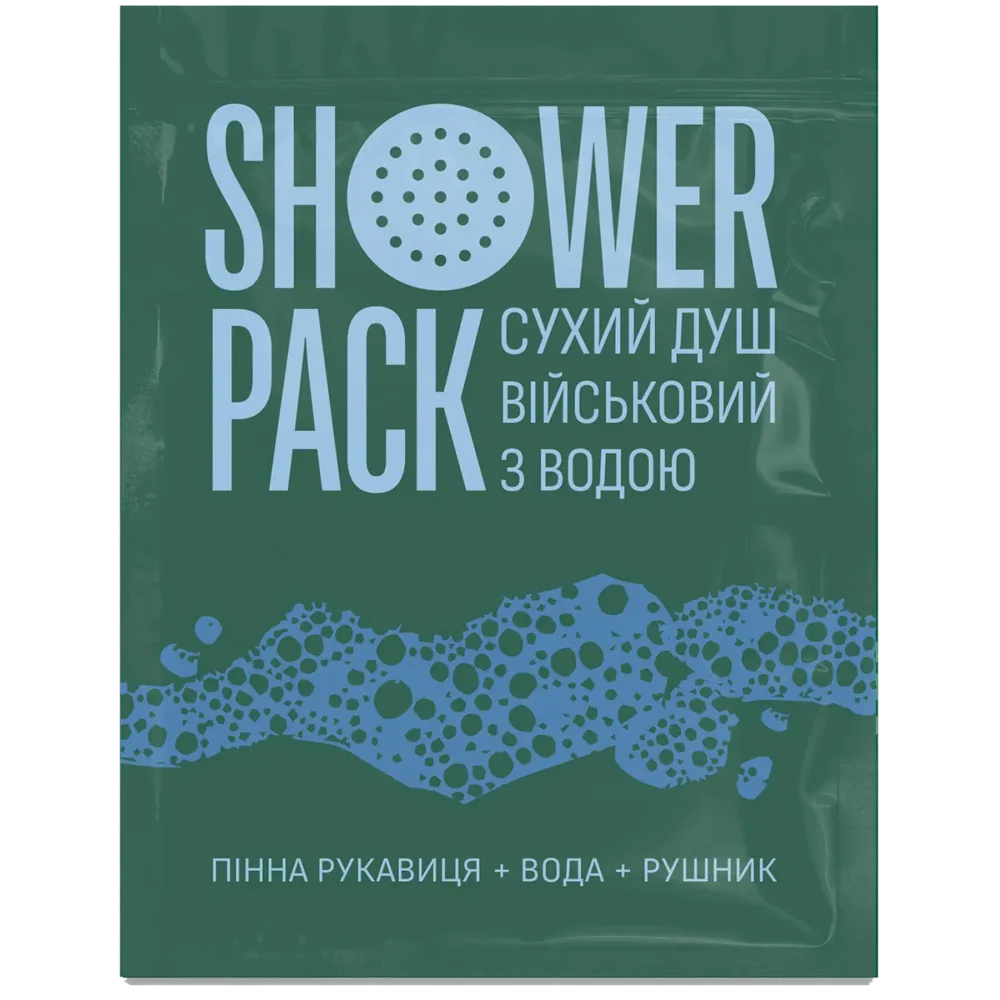 Компактне, зручне та повністю автономне рішення для гігієни в польових умовах. Всередині — двостороння пінна рукавиця, якій достатньо лише 50 мл води (саше з водою у комплекті), щоб швидко освіжити все тіло без потреби в змиванні. Ідеально підходить для військових, волонтерів, мандрівників або тих, хто тривалий час знаходиться без доступу до душу.