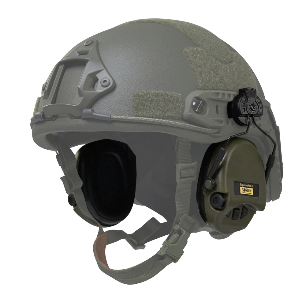 Активні навушники Sordin Supreme Pro X Slim з кріпленням на шолом та гелеві амбушюри. Олива