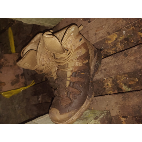 Популярна модель тактичних черевиків від всесвітнього відомого бренду взуття Salomon та щей з водонепроникною мембраною Gore-Tex, що гарантує захист від опадів та хорошу паропроникність за будь-якого типу активностей — це просто Вау. Фірмова конструкція підошви здійснює підтримку стопи при великих і тривалих навантаженнях, забезпечує відмінну амортизацію та тривалу експлуатацію виробу. Мають додатковий захист від ударів та пошкоджень.