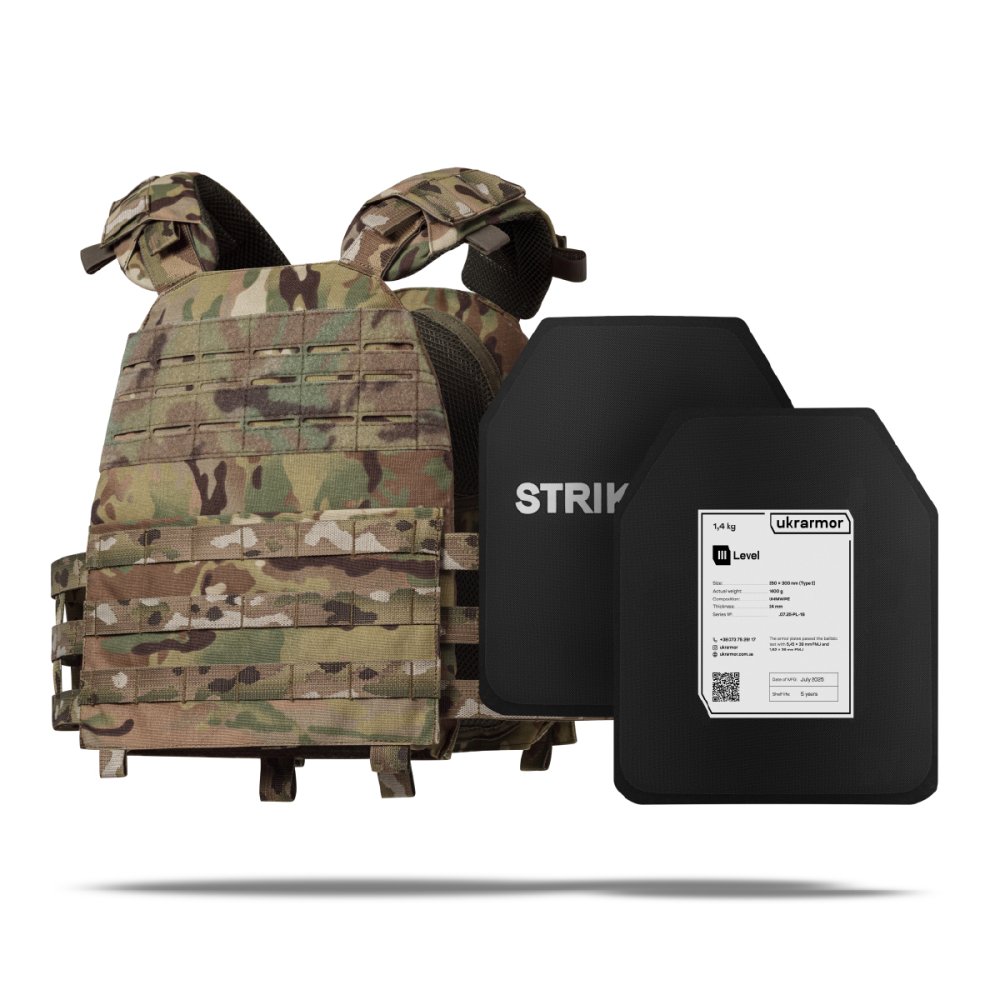 - 2 бронеплити 3-го класу з НВМПЕ (вага 1.4 кг) розміру 25х30 см;
