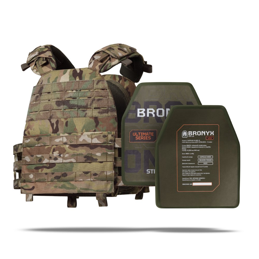 – 2 бронеплити 5 класу Ultimate Bronyx (вага 1.86 кг, матеріал кераміка карбід бору (B4C);