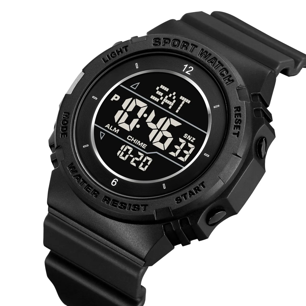 Надійний наручний чоловічий годинник у мілітарі стилі, розрахований на активне щоденне використання в міських, польових та тренувальних умовах. Модель оснащена практичним електронним набором функцій: секундоміром, будильником, таймером зворотного відліку та календарем. Чорний силіконовий ремінець у поєднанні з матовим чорним корпусом формує стриманий, але виразний образ, який органічно підходить для активного стилю життя.