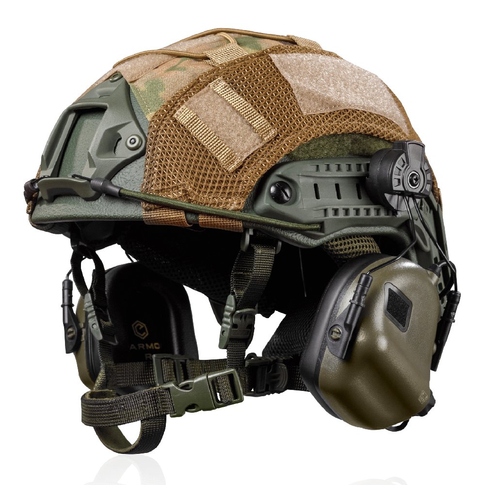 Практичний та перевірений комплект для захисту голови, що повністю відповідає вимогам сучасного українського воїна та складається з кевларового шолома Fast з рівнем захисту NIJ IIIA (захищає від уражень уламками, рикошетів та пострілів з легкої стрілецької зброї), покращених активних навушників M31H Plus з шумозаглушенням шкідливих звуків (понад 82 Дб) і гелевими амбюшурами та маскувального кавера з надміцної тканини Cordura 500D.