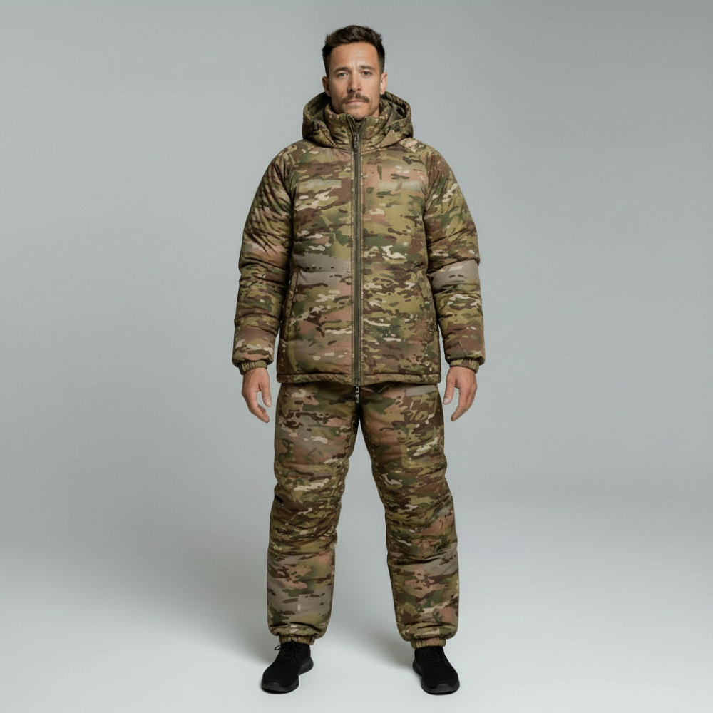 Комплект зимового одягу Level 7 North до -40°C (ECWCS Gen III). МультикамУтеплений костюм (куртка та штани) забезпечує максимальний комфорт у найсуворіших погодних умовах. Продуманий до дрібниць, він зберігає повну свободу рухів та гарантує відмінну теплоізоляцію. Цей комплект є сьомим зовнішнім шаром модульної системи одягу ECWCS третього покоління, яка здобула популярність серед військових і цивільних екстремалів у всьому світі.