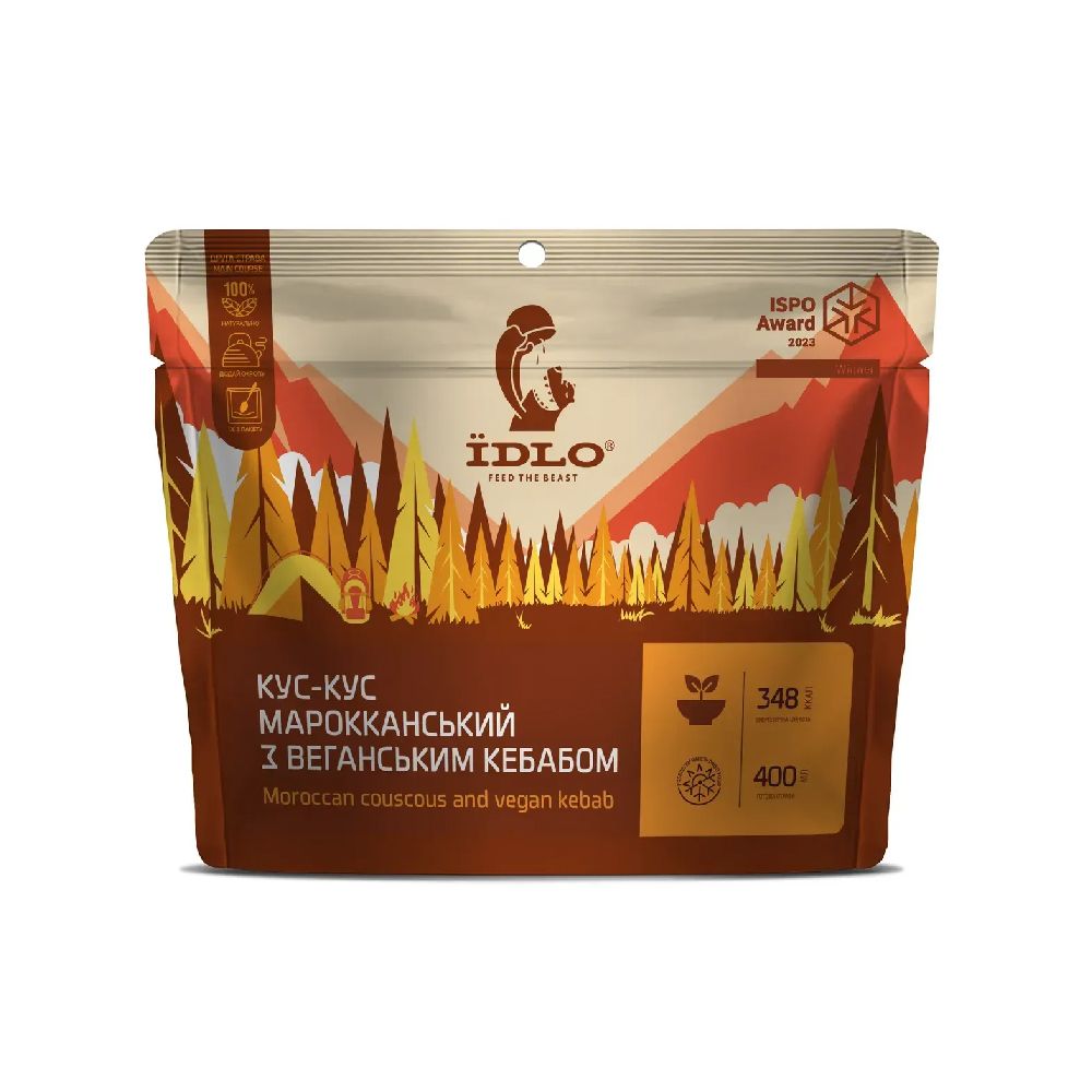 Кус-кус марокканський з веганським кебабом ЇDLO, 90 г (сухий сублімований продукт швидкого приготування)Смачна, поживна та на 100% рослинна страва зі східним ароматом. Ароматні спеції, ніжний кус-кус і пряний веган-кебаб створюють ідеальне поєднання для швидкого перекусу або ситного прийому їжі просто неба. Страва не містить консервантів, готується за лічені хвилини та дарує відчуття тепла й насичення, як після домашньої кухні – тільки у форматі легкого сублімованого пакета.