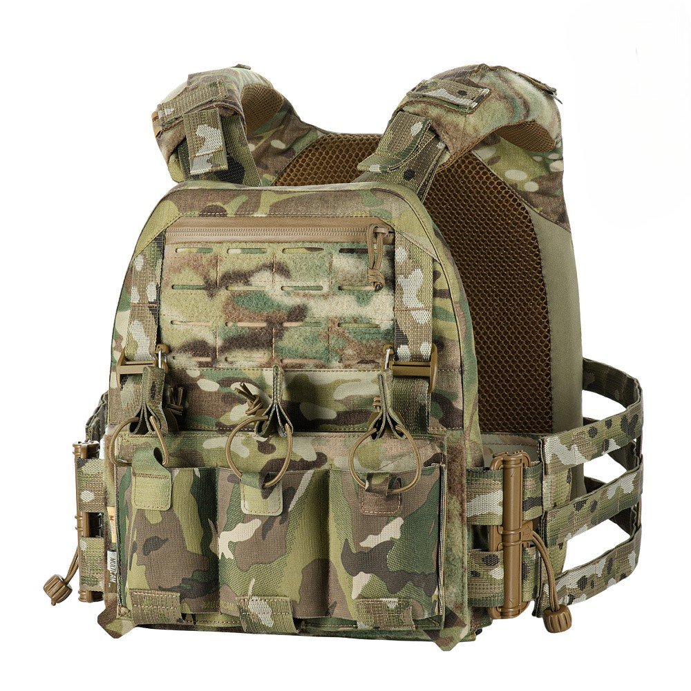 M-Tac плитоноска Cuirass Elite (розмір плити М). МультикамЦя модель поєднує у собі сучасні матеріали, продуману конструкцію та високий функціонал, необхідний для бойових умов. Cuirass Elite — абсолютно новий етап у розвитку індивідуального бронезахисту від бренду M-Tac. Модель сумісна з бронеплитами стандарту ESAPI (USA) Medium розміром 31.8 х 24.1 см (зі скошеними верхніми кутами).