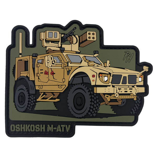 Патч (шеврон) «Oshkosh M-ATV» від Patch hunter. М’який ПВХ пластик. КойотOshkosh M-ATV – це американський броньований автомобіль категорії MRAP, створений для захисту екіпажу від мін, фугасів і засідок. Його головна перевага – прохідність у важких умовах, де інші бронемашини просто не зможуть пройти.