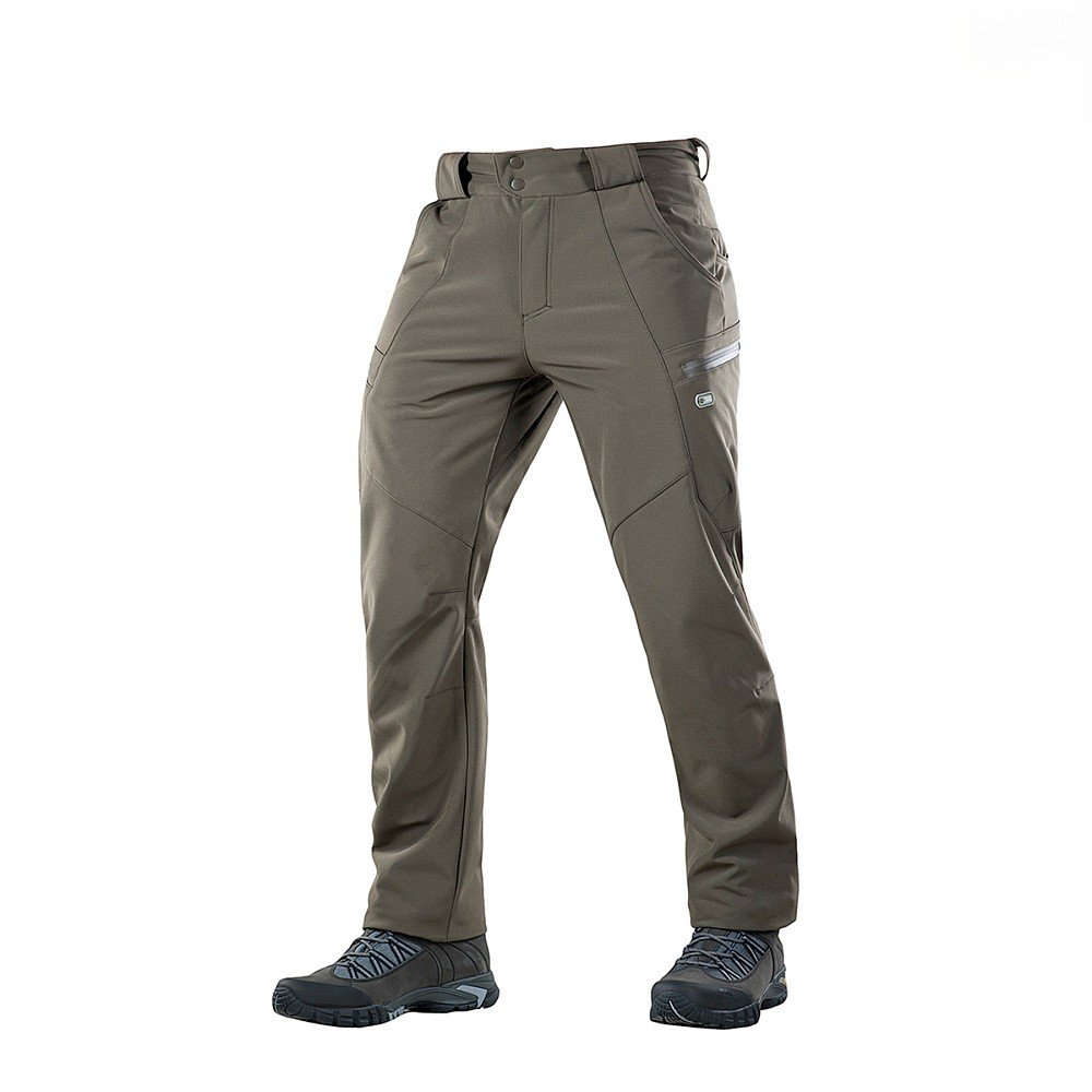 Штани M-Tac Soft Shell Winter. ОливаНадійно захищають від вітру, опадів та снігу, водночас забезпечуючи ефективне відведення вологи під час фізичної активності. Штани виготовлені з інноваційного матеріалу Softshell, що має багатошарову структуру: зовнішній шар протистоїть негоді, а внутрішній фліс забезпечує тепло та комфорт. Ідеально підходять як верхній одяг для міжсезоння та зими – особливо коли важливо зберігати мобільність і уникнути перегріву.