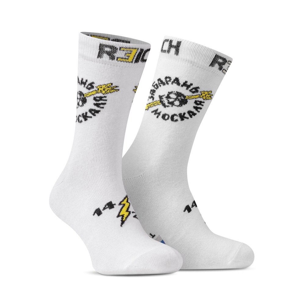 Шкарпетки R3ICH «Забарань москаля», 41-45. БіліЦя пара шкарпеток — не просто елемент гардероба, а чітка позиція. Вони закликають плекати в собі здорову русофобію та зневагу до ворога.