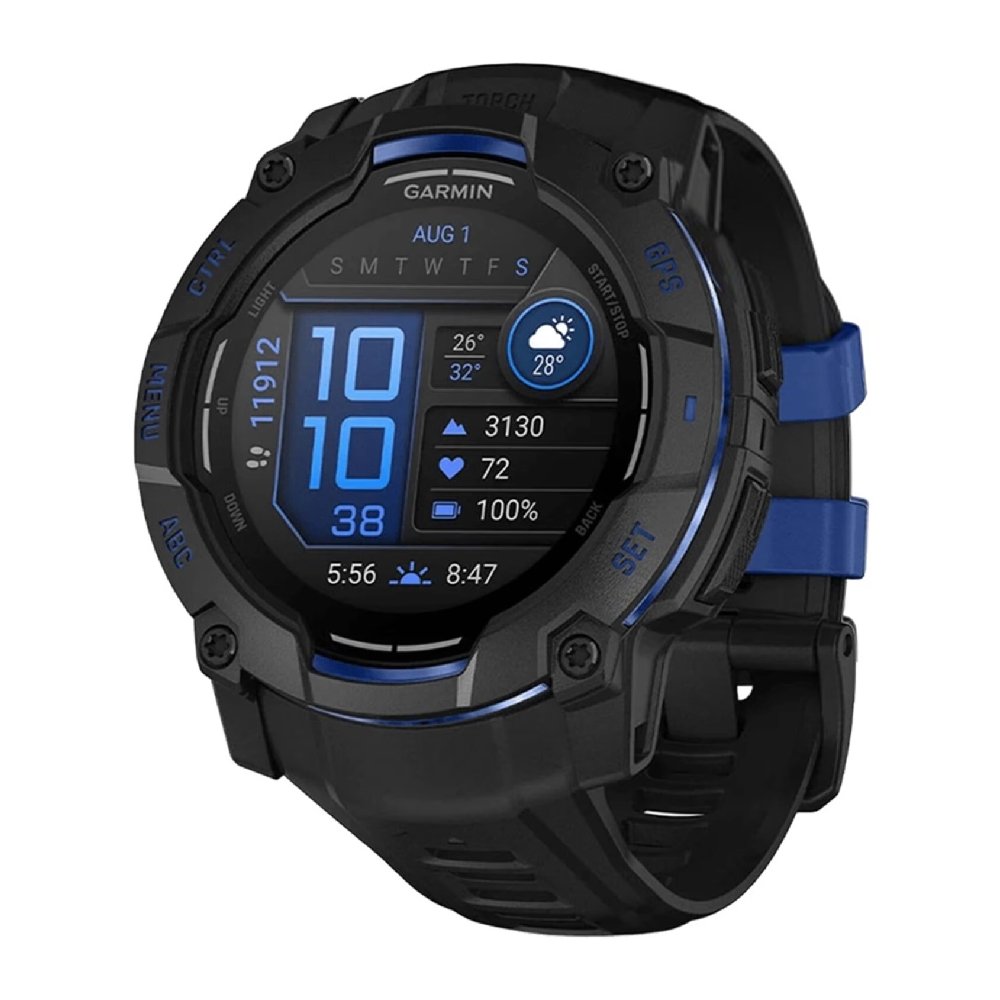 Смарт-годинник Garmin Instinct 3 Amoled, GPS, 50 mm. Чорний з синіми вставками