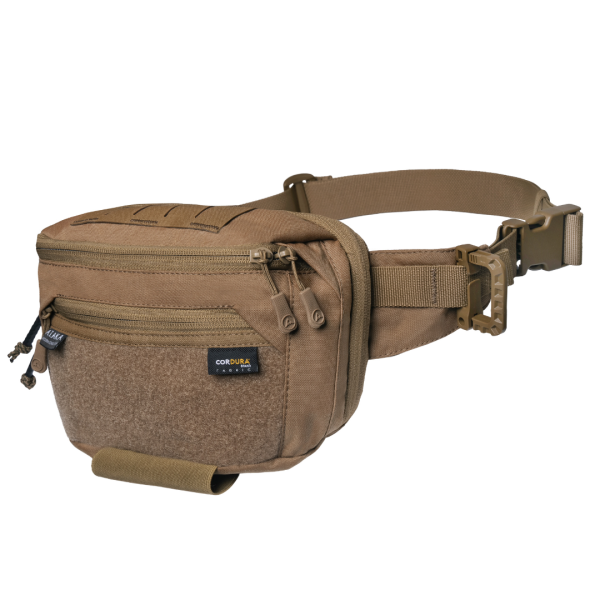 Зовнішні елементи сумки доповнені MOLLE Laser Cut системою та velcro-панеллю розміром 20 × 8 см для шевронів та улюблених патчів. Регульований ремінь із масивним фастексом забезпечує надійну фіксацію, а додаткові MOLLE-слоти на ремені дозволяють розмістити спорядження швидкого доступу.
