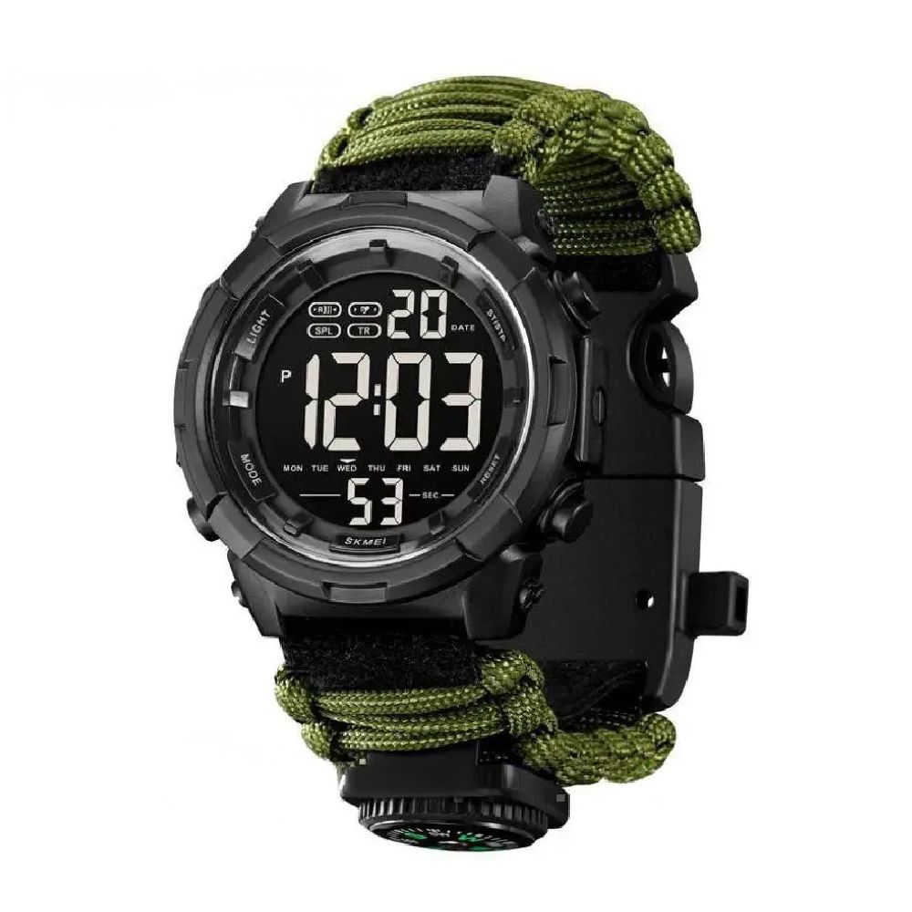 Водонепроникний годинник Skmei 1845 з високоякісним кварцовим механізмом Miyota гарантує максимальну точність відображення часу протягом усього періоду експлуатації. Багатофункціональний паракордовий ремінець спеціально розроблений для військових та поціновувачів екстремальних подорожей.