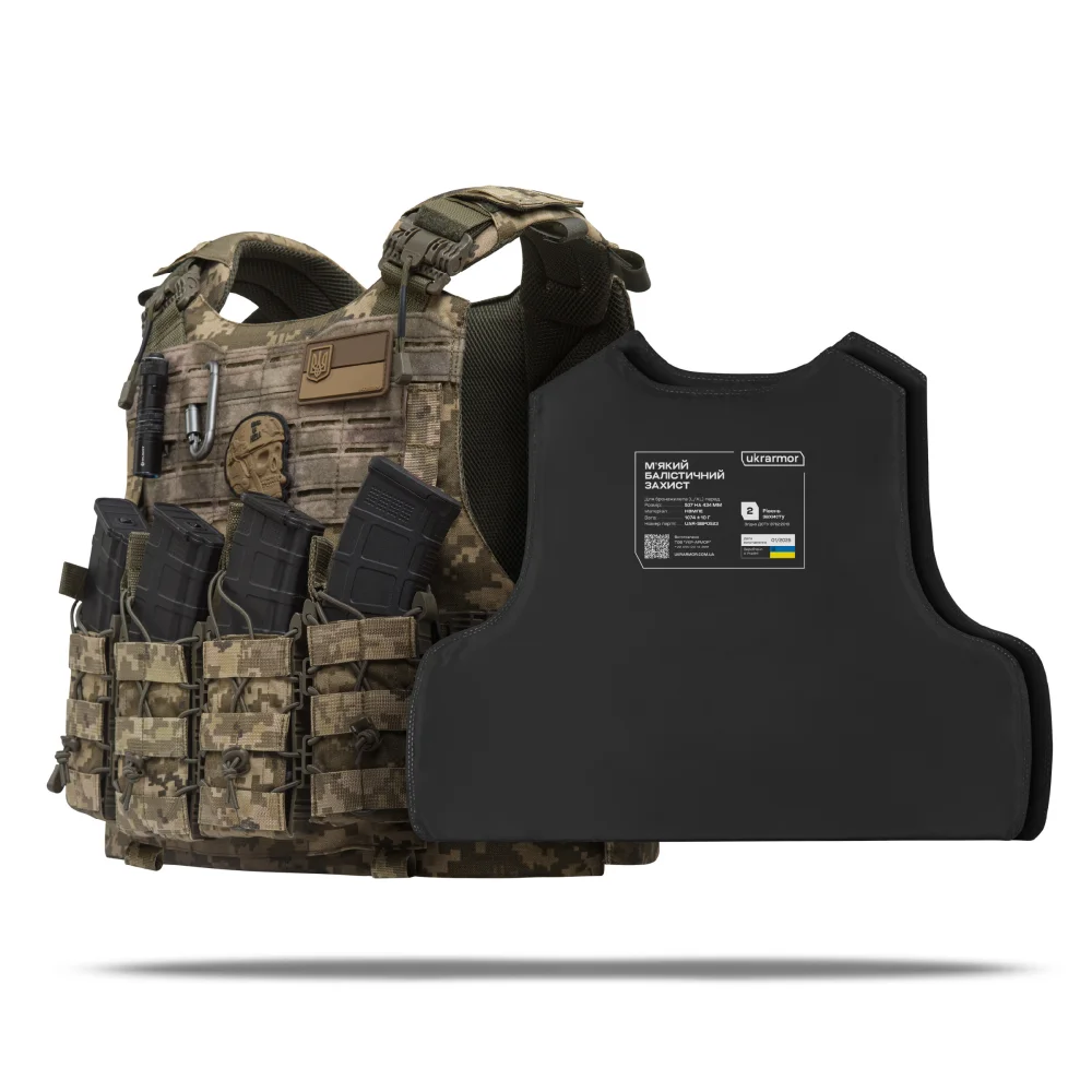 Доброго дня, купив даний комплект з балістичним захистом 2 класу, виріб якісний, в порівнянні з штатним, то небо і земля, дуже зручний)
