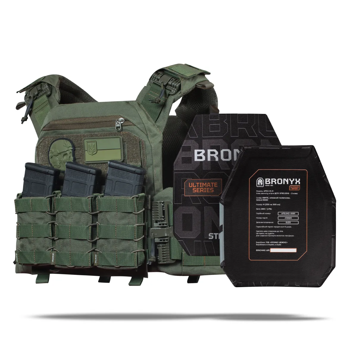 - 2 бронеплиты 3 класса Ultimate Bronyx (вес 0.99 кг, материал СВМПЭ (сверхвысокомолекулярный полиэтилен);