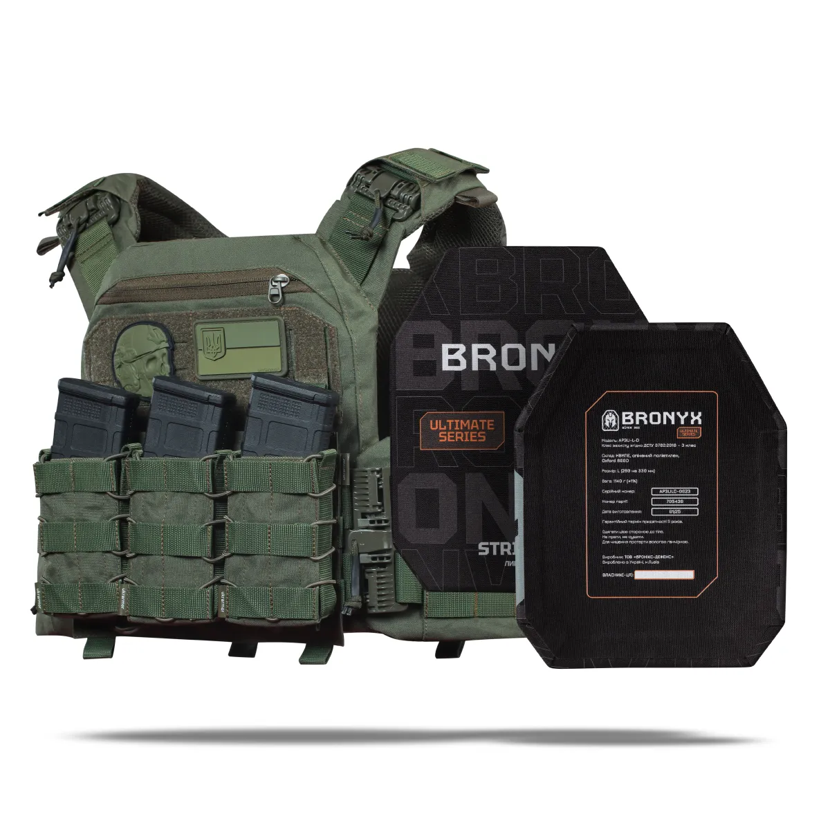 – 2 бронеплиты 3 класса Ultimate Bronyx (вес 1.14 кг, материал СВМПЭ (сверхвысокомолекулярный полиэтилен);