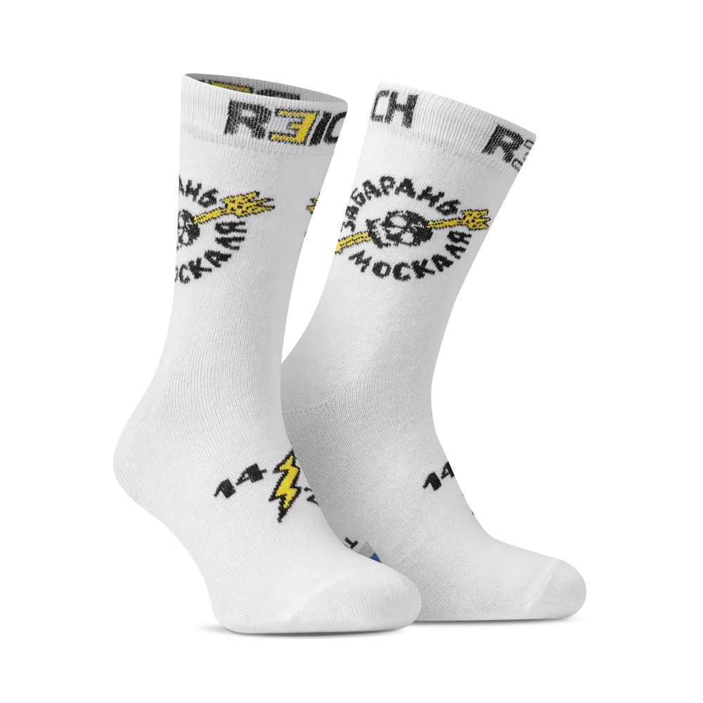 Носки R3ICH «Забарань москаля», 41-45. БелыеЭта пара носков — не просто элемент гардероба, а четкая позиция. Они призывают лелеять в себе здоровую русофобию и презрение к врагу.