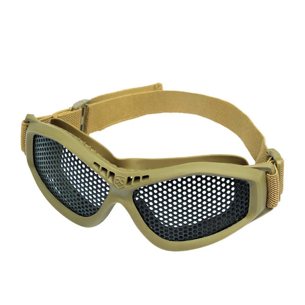 Очки для страйкбола WoSport GG-MA-74. КойотСовременная альтернатива классическим очкам для страйкбола, где важно сочетать хорошую вентиляцию с надежной защитой глаз. Вместо традиционной линзы модель оснащена металлической сеткой с ячейками 1,4 мм, которая эффективно задерживает пластиковые шарики, снижая риск травм. При этом сетка не препятствует циркуляции воздуха, благодаря чему полностью отсутствует эффект запотевания, характерный для обычных линз.