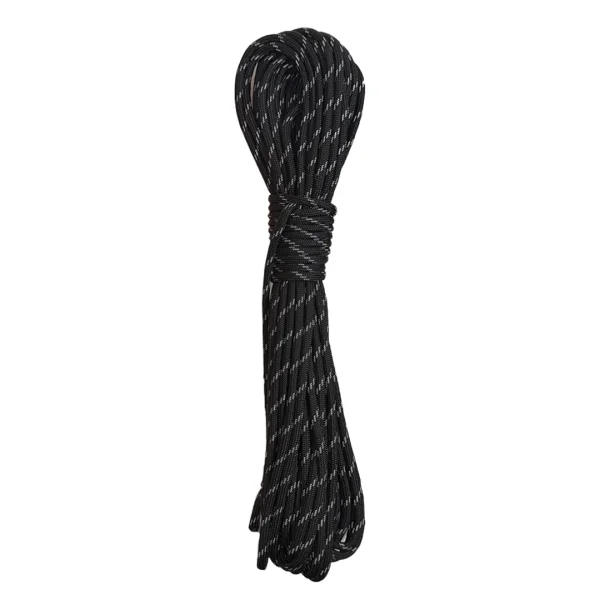 Легкий и сверхпрочный нейлоновый паракорд, выдерживающий нагрузку до 250 кг и 7 внутренних нитей (общий диаметр 4 мм). Особенностью этой модели является наличие светоотражающей нити, вплетенной в оболочку – это повышает заметность шнура во тьме и делает его особенно удобным для использования в походах, на стоянках и во время тактических задач.
