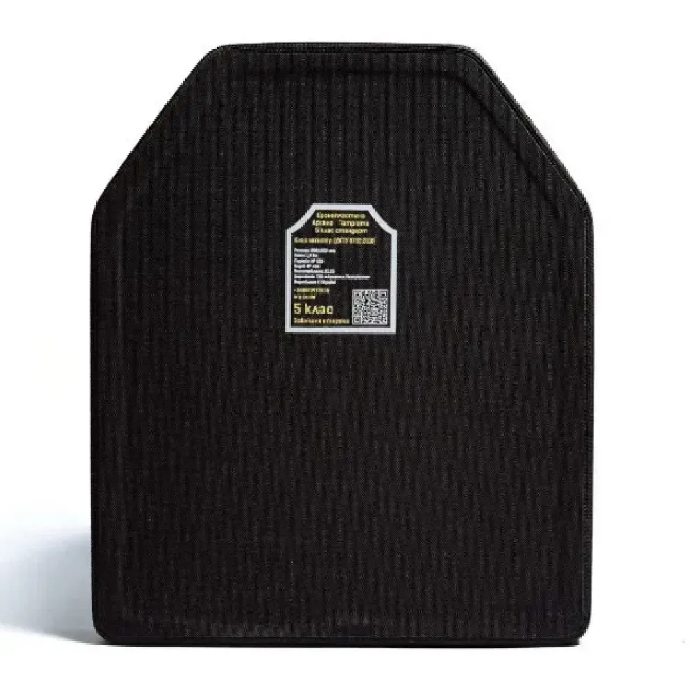 Бронеплита 5 класса имеет размеры 25х30 см и анатомические изгибы по ширине, подходящие под форму грудной клетки. Срезанные края не ограничивают движения и позволяют удобно пользоваться огнестрельным оружием.